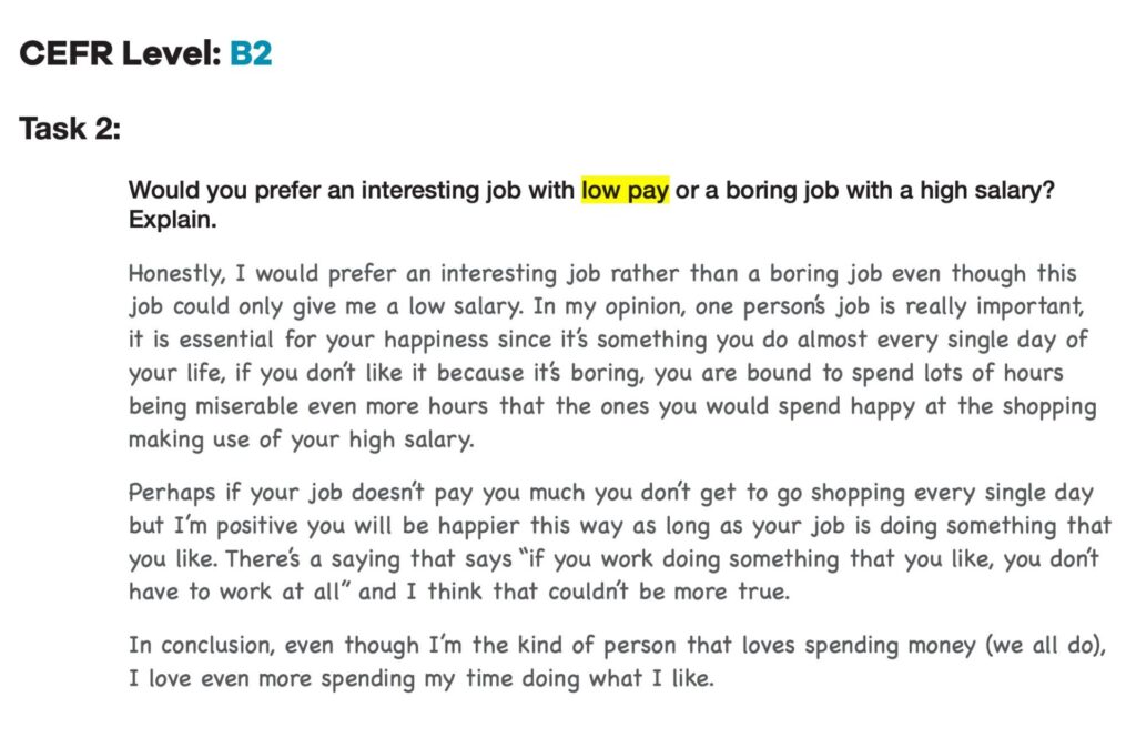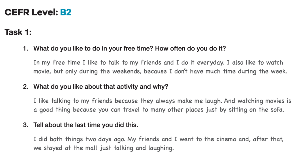 Your score report comes with both section scores and the overall average, plus their corresponding CEFR levels.